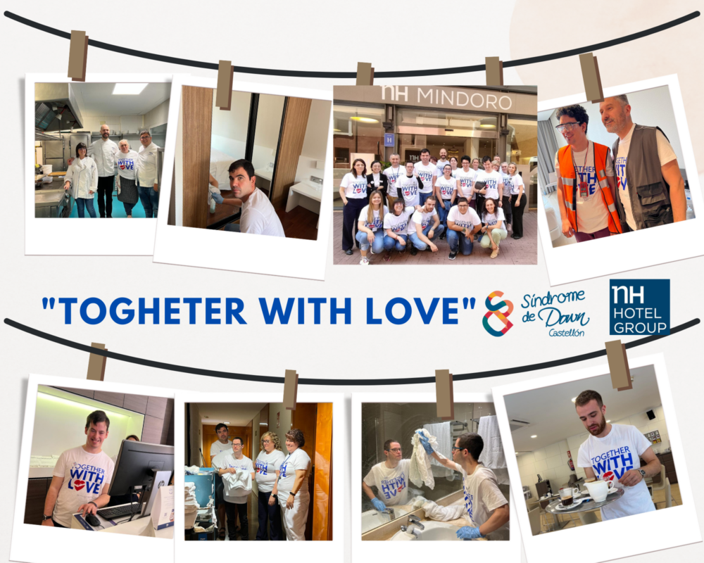 Los hoteles NH Mindoro y NH Turcosa han organizado la jornada “Togeter with Love” en la que 8 alumnos y alumnas del Curso de Transición a la Vida Autónoma que se realiza en la Fundación Síndrome de Down de Castellón han podido ser “trabajadores y trabajadoras”, durante un día, en diferentes puestos de trabajo y realizar las funciones y tareas propias de las diferentes profesiones que se desempeñan en un hotel.