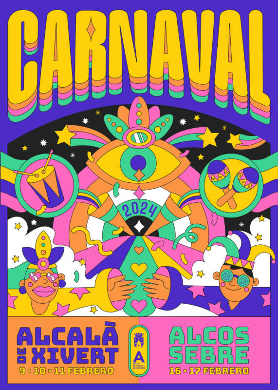 Alcalà-Alcossebre es prepara ja per a la celebració d'una nova edició del Carnestoltes. El regidor de Promoció Cultural i Festiva, Javi García Pitarch, ha anunciat en roda de premsa les principals novetats i qüestions a tindre en compte de cara a aquesta festa, que es viu de manera intensa en tots dos nuclis. En Alcalà, el Carnestoltes se celebrarà del 9 a l'11 de febrer i, a Alcossebre, del 16 al 18 de febrer. Respecte al cartell anunciador de la festa, s'ha optat per un disseny que pretén comunicar "l'explosió d'alegria, color i sentiment que és el nostre Carnestoltes", explicava l'edil de Promoció Cultural i Festiva, Javi Garcia Pitarch. Els creadors són Pistacho Studio de Benicarló i, com a inspiració, s'ha pres l'estètica psicodèlica dels anys 60 del segle XX.