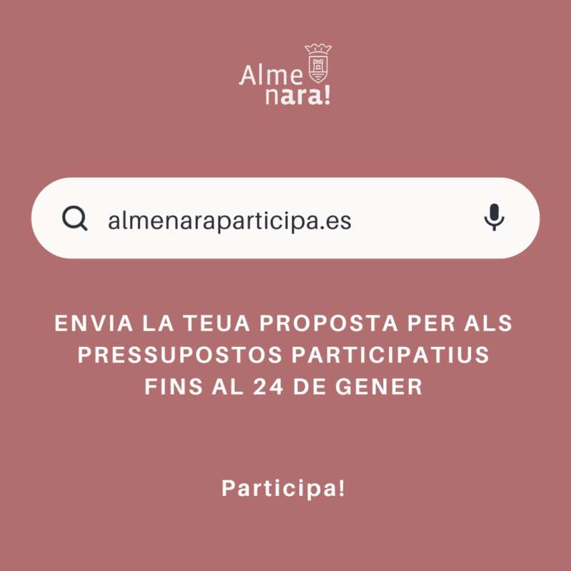 Des de demà i fins al 24 de gener es podran fer les propostes en almenaraparticipa.es