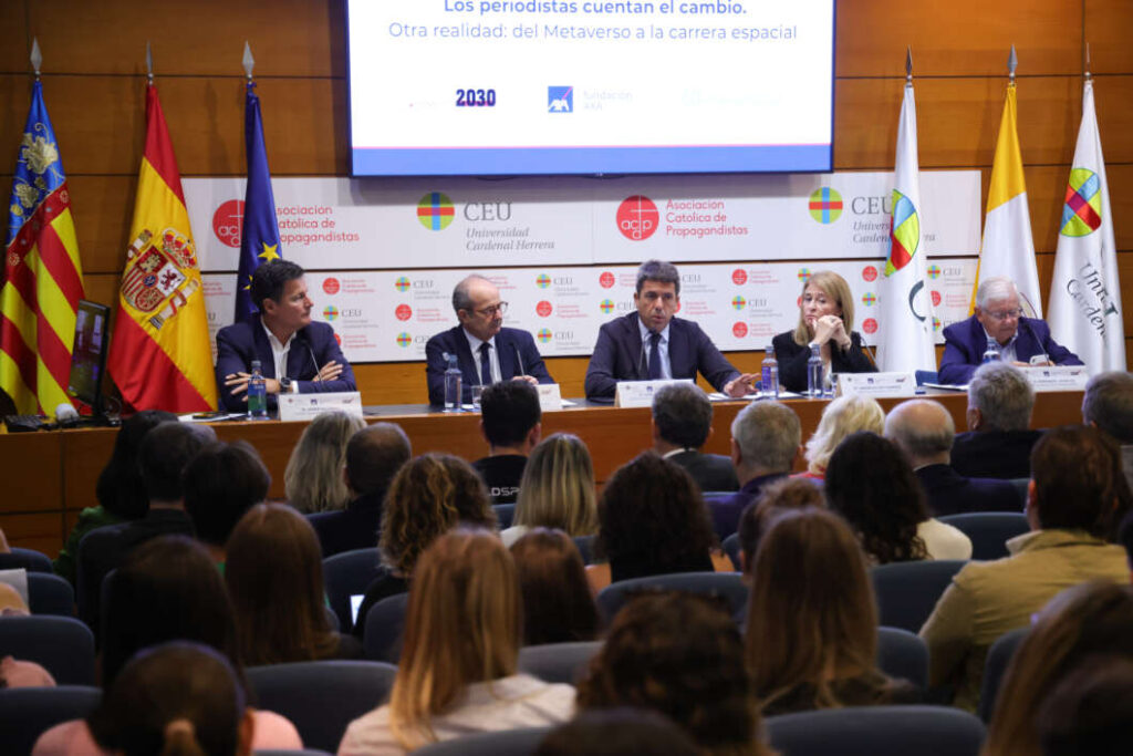 Durante su discurso, Carlos Mazón ha reivindicado “el papel esencial” de los periodistas y la necesidad de que sean “rigurosos, libres e independientes” para que puedan contar y ayudar a comprender “la nueva realidad y retos” de la Comunitat como “historiadores del instante”, tal y como los definió Albert Camus.