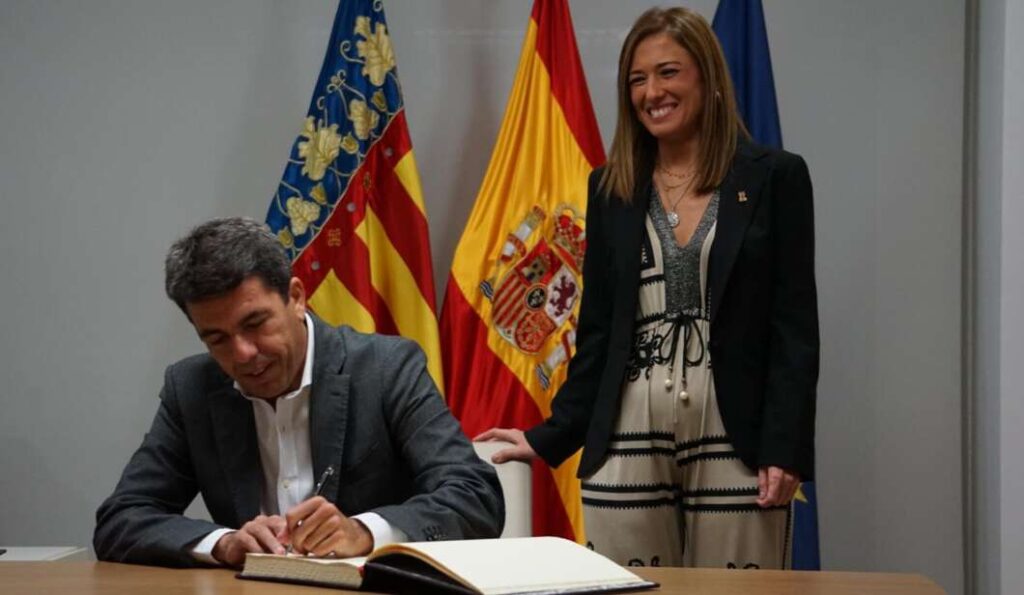Mazón ha firmado en el libro de honor del consistorio y ha mostrado su compromiso con Almassora para que la localidad siga avanzando a nivel económico y social en los próximos años.