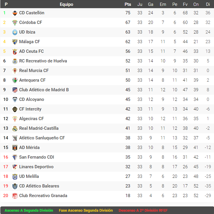 -1- Castellón: Gonzalo; Chirino, Alberto, Óscar Gil; Douglas (Iosifov, 67′), Moyita, Lottin (Villahermosa, 67′), Manu Sánchez Kastaneer, 67′), Vertrouwd; Raúl Sánchez (Iago Indias, 80′), De Miguel (Granero, 80′).
