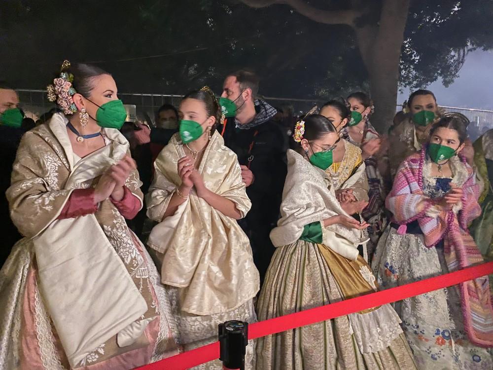 A diez minutos del inicio, con el segundo aviso, se apagaron todas las luces del entorno. Fue entonces cuando hicieron su entrada las damas infantiles de la ciudad acompañadas por la reina Gal·la Calvo. Después llegaba la reina Carmen Molina con su cortejo.