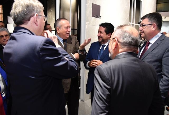 El presidente Moliner ha agradecido a los ayuntamientos la confianza depositada en la Diputación a la hora de participar todos juntos en Cevisama en el stand provincial, "un foco de aportación de valor desde lo público, desde los ayuntamientos, a un sector privado que va a ver pasar hoy por aquí a todos sus clientes de todo el mundo".