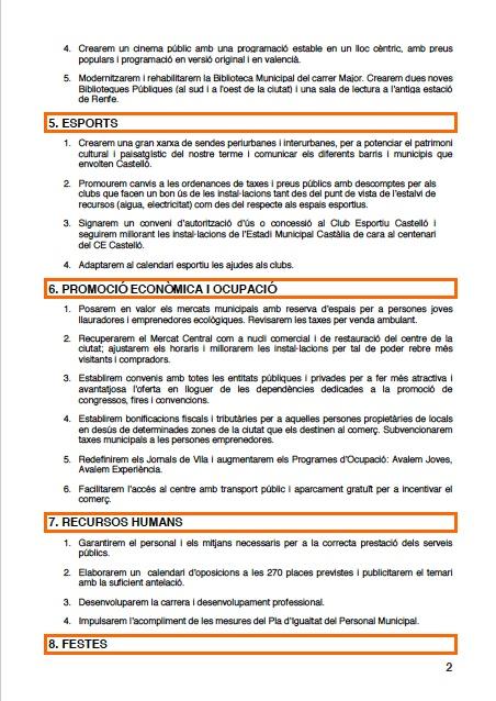 Durant la presentació del programa, l'edil ha explicat que "un dels compromisos que volem adoptar es convertir en parc natural Muntanya Negra, així com construir 200 habitatges per a lloguer social i també posar contenidors de reciclatge cada 100 metres, per fer de Castelló una ciutat més neta i que lluita contra el canvi climàtic".