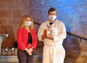 Agustín Marcos Calabuig, junto a Lupe Saigua Naranjo, del restaurante Nou Bar ha sido el ganador del Concurso de cocina aplicada al langostino de Vinaròs 2021.