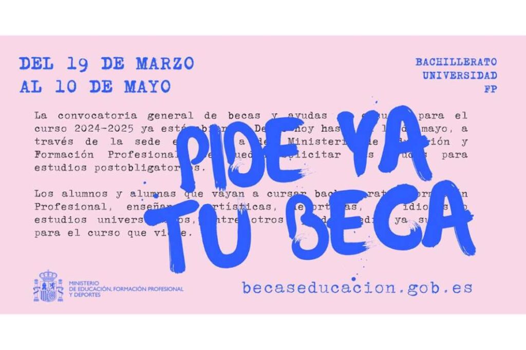 La convocatòria general de beques i ajudes a l'estudi per al curs 2024-2025 s'obrirà dimarts que ve, 19 de març. Les ajudes per a estudis postobligatoris es podran sol·licitar fins al 10 de maig a través de la seu electrònica del Ministeri d'Educació, Formació Professional i Esports.