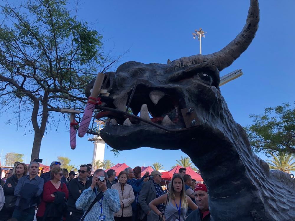 Desde las 19:30 horas, la gente ya pedía su turno para montarse en el globo aerostático cautivo, bien para sobrevolar Castelló y obtener una panorámica única de la ciudad, bien para otear con sumo interés si el Galeón Andalucía surcaba las olas próximas al puerto. También para contemplar el inicio de las justas navales de Sète, cuyo primer torneo arrancó a las 20.30 horas y se reivindicó como otra de las grandes atracciones del día.