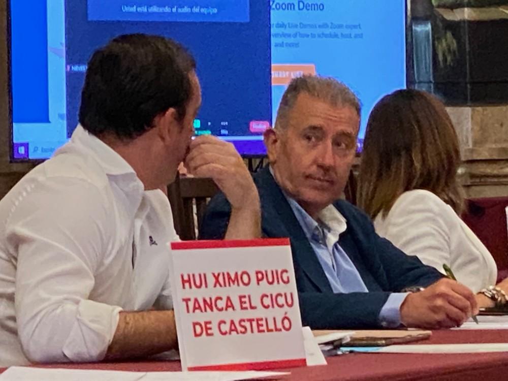 Los populares lo han escenificado con carteles dispuestos en las mesas, delante de cada uno de los diputados, donde podía leerse: “Hui Ximo Puig tanca el CICU de Castelló”.