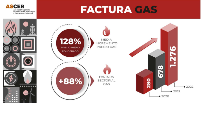 El precio de la energía en la cerámica tiene un impacto muy importante al ser un sector de consumo intensivo de gas. De ahí que el aumento registrado por la espiral inflacionista de los últimos años y la Guerra de Ucrania supone una seria problemática para la actividad, que ve que en 2023 ya tiene afección tanto a nivel de producción como en los pedidos en los mercados exteriores.