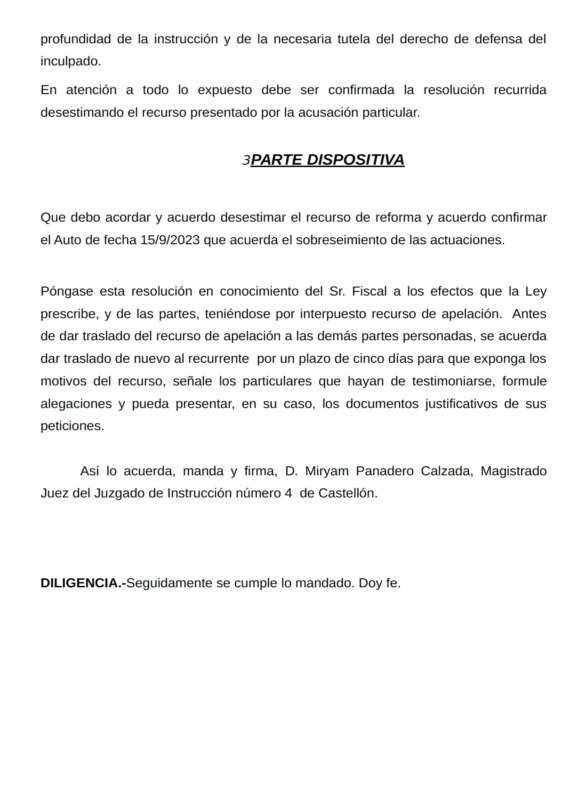 Los denunciantes recurrieron la decisión judicial, pero el juzgado mantuvo el sobreseimiento en fecha del 9 de enero de 2024.