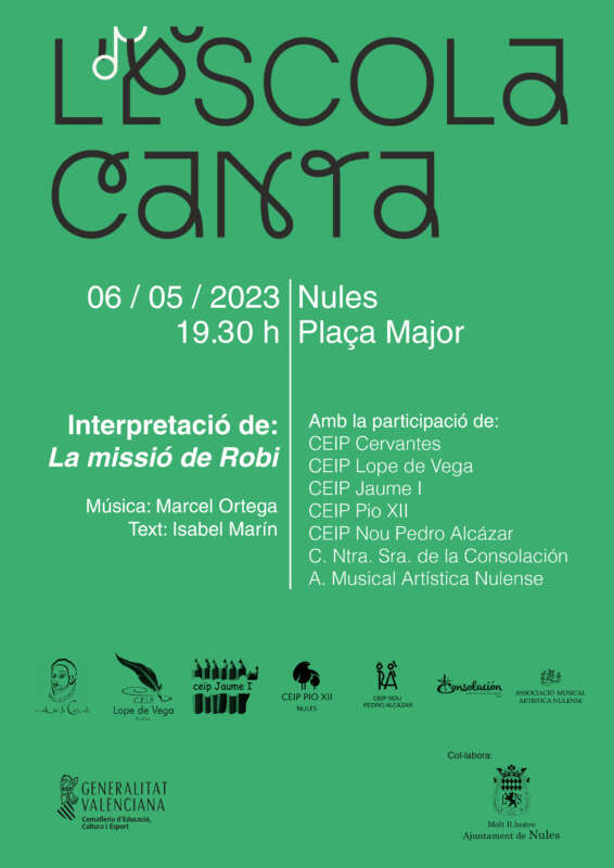 Cal assenyalar que, l’Escola Canta és un projecte que promou la Direcció General d’Innovació Educativa i Ordenació amb l’objectiu de promoure l’ús del valencià i fomentar l’aprenentatge musical entre l’alumnat. Amb tot, el concert de cloenda comptarà amb la col·laboració de l’Ajuntament de Nules.