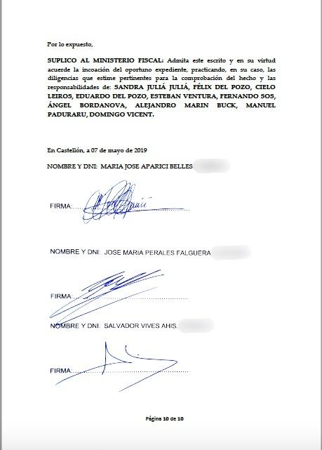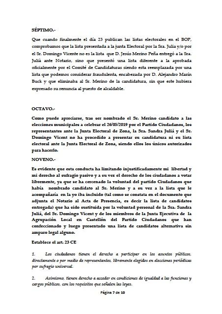 Tal como amenazaron en su momento allegados a Jesús Merino, esta mañana se presentaba la querella, que solicita, entre otras cosas, la impugnación de esa candidatura de Ciudadanos al Ayuntamiento de Castellón. Pero es más, la querella solicita responsabilidades penales contra: Sandra Julià, Félix del Pozo, Cielo Leirós, Eduardo del Pozo, Esteban Ventura, Fernando Sos, Ángel Bordanova, Alejandro Marín Buck, Manuel Paduraru y Domingo vicent.
