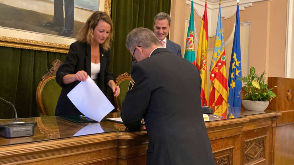 La secretaria del Ayuntamiento ha realizado la lectura del nombramiento oficial. A continuación, Francisco Catalán ha jurado su cargo ante la alcaldesa de Castellón, Begoña Carrasco, y el concejal de Seguridad, Antonio Ortolá.