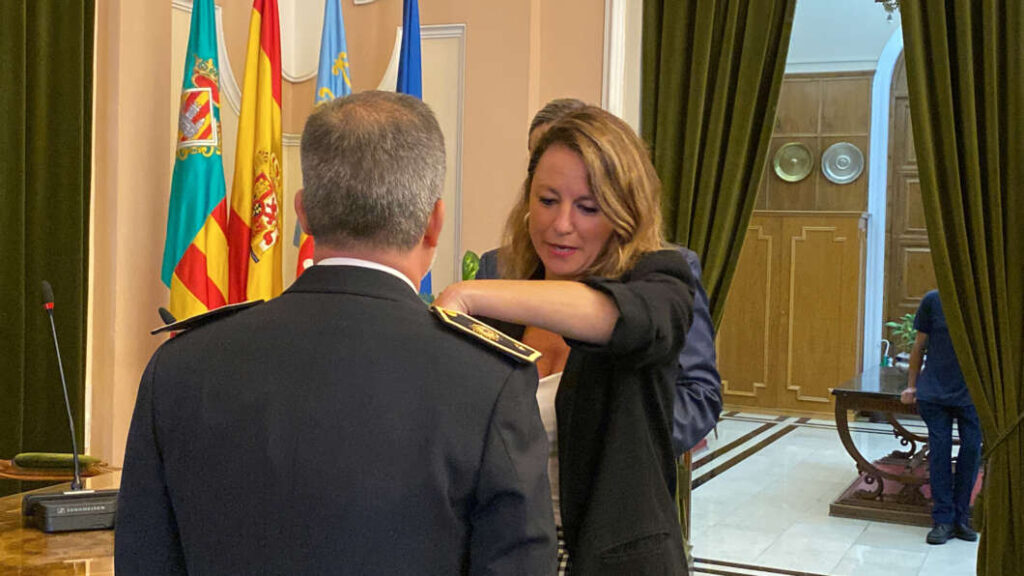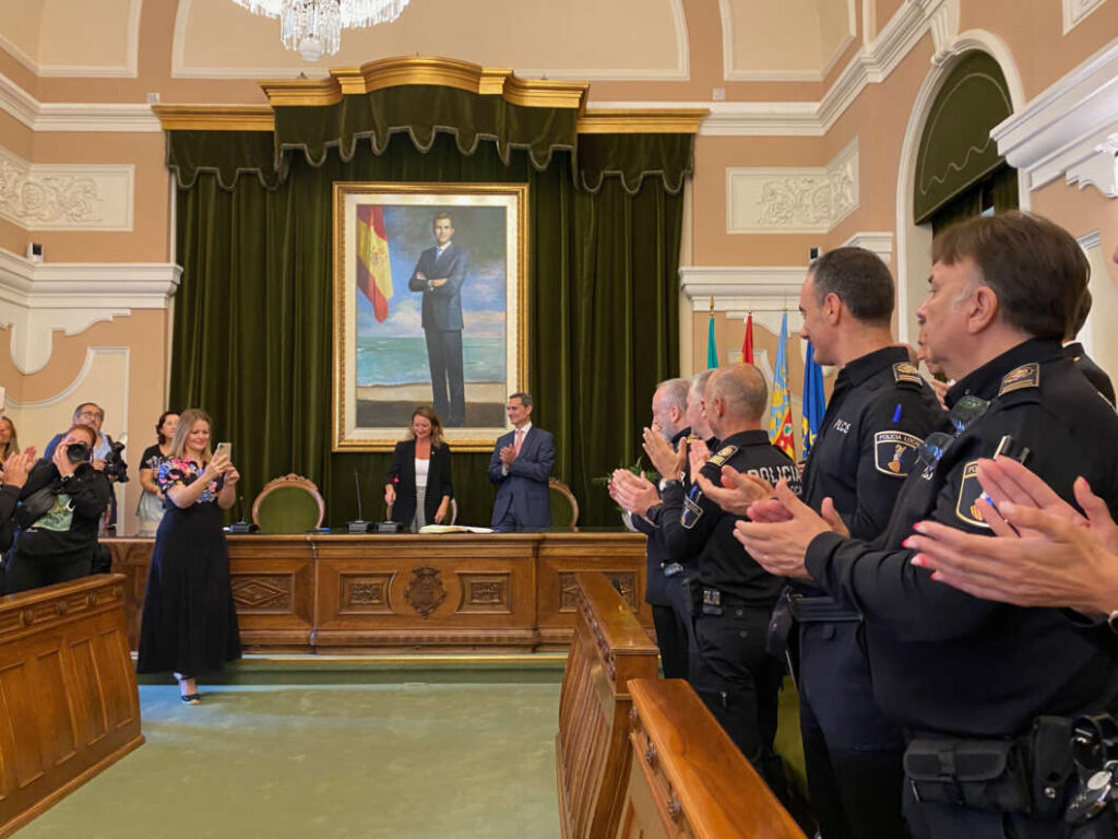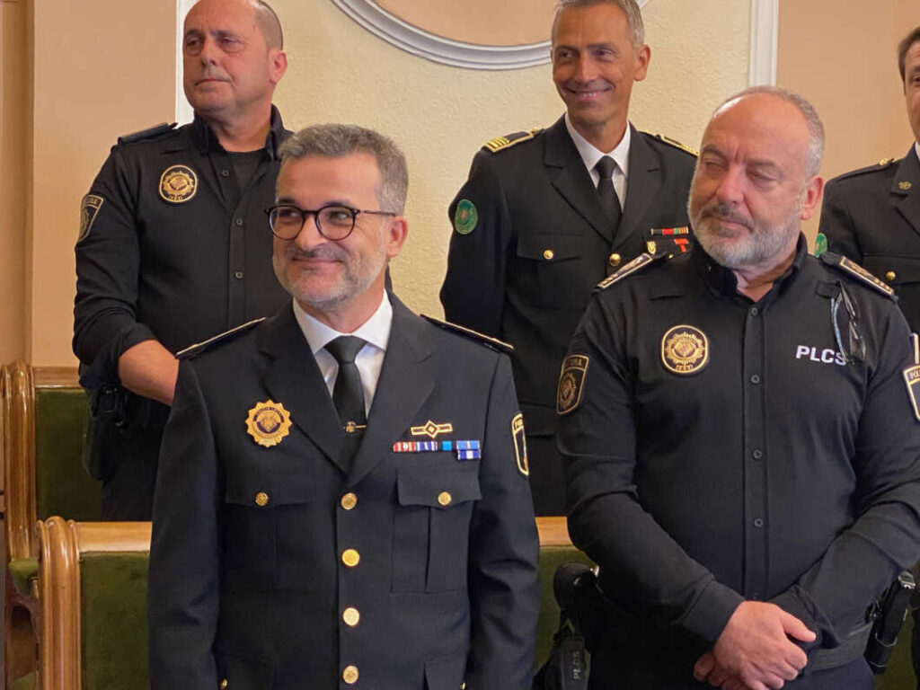 Después de un fuerte aplauso, el concejal de Seguridad le ha impuesto los galones de su cargo, y la alcaldesa de Castellón ha prendido la insignia que lo identifica como máximo responsable de la Policía Local de Castellón.