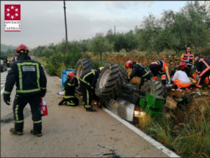 Efectivos de bomberos del CPBC del parquePlana Baixa y del parque de bomberos voluntarios de L’Alcalaten han intervenido en el accidente de tráfico. Los bomberos han excarcelado al conductor del tractor que había volcado.