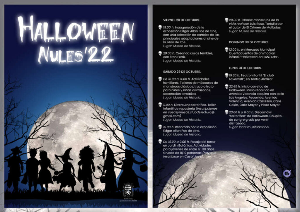 Halloween arribarà enguany a Nules amb una variada programació que es desenvoluparà al llarg d’aquest cap de setmana, en concret des de divendres fins al pròxim dilluns.