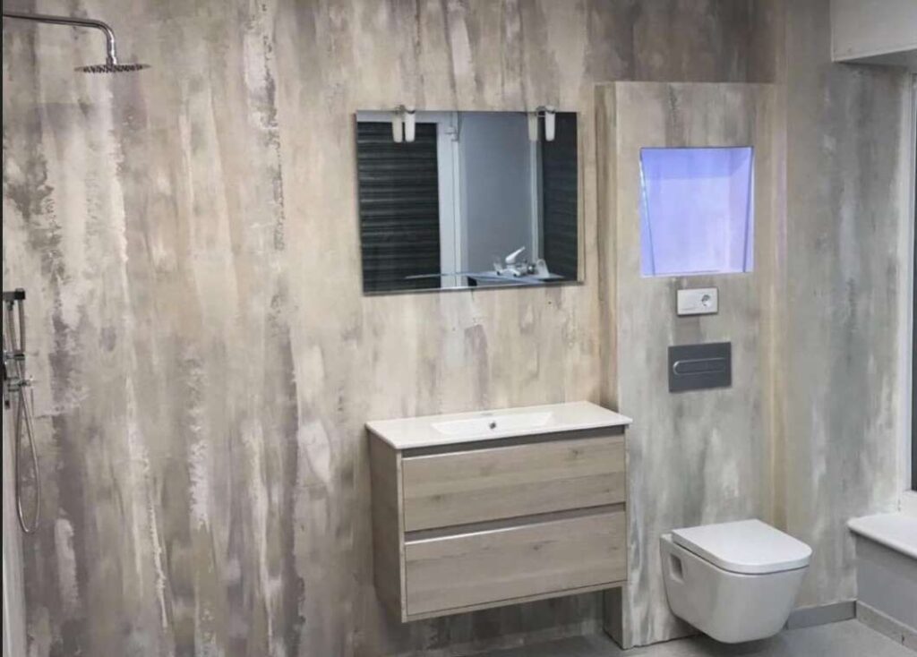 Microcemento: Ideal para suelos y paredes, aporta un acabado moderno y minimalista.