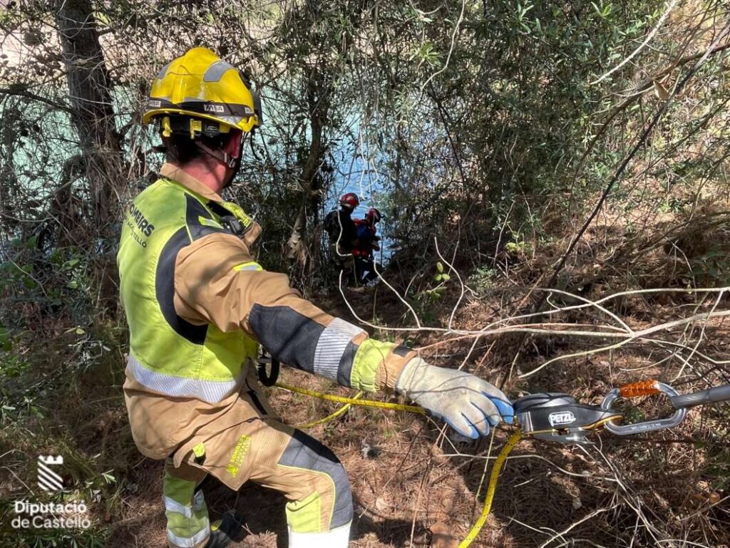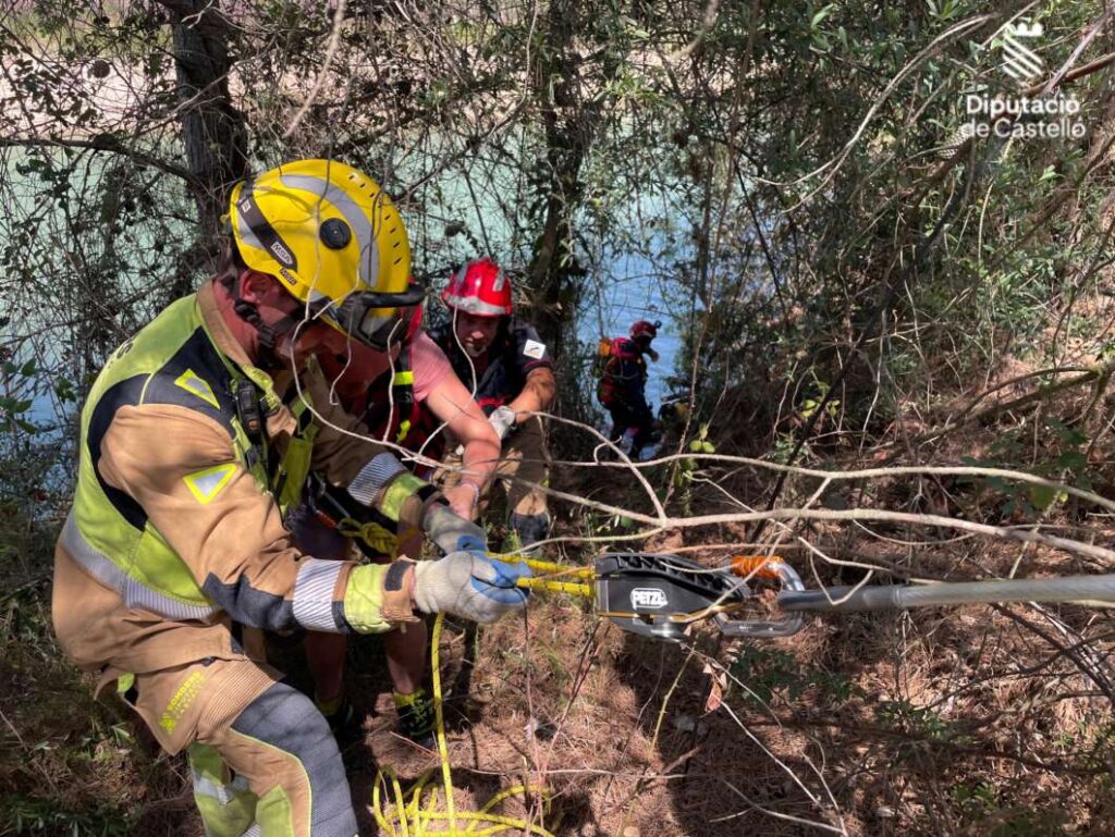 Ha acudido una dotación del parque de bomberos de Plana Baixa, que mediante equipamiento de rescate acuático y de rescate en montaña, han accedido hasta el lugar donde se encontraba y lo han extraído y trasladado hasta ambulancia del SAMU. Ha colaborado también una agente de la Policía Nacional.