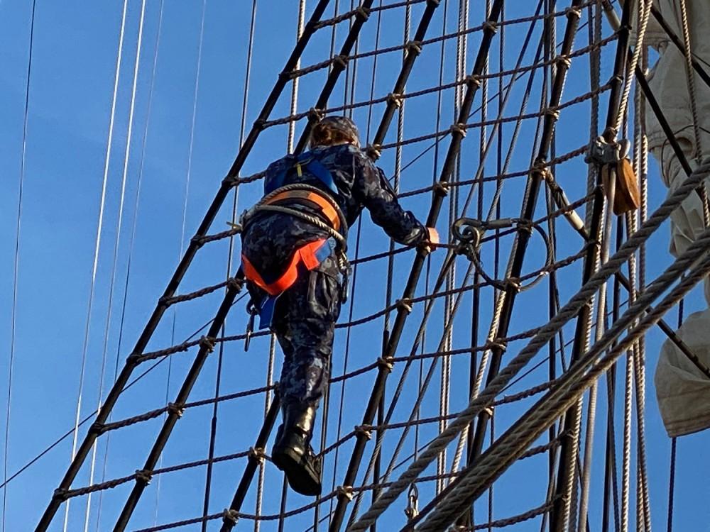 Además, y para mayor singularidad, los marineros iban sujetos en las jarcias de las velas, con lo que la sensación fue ya completa.