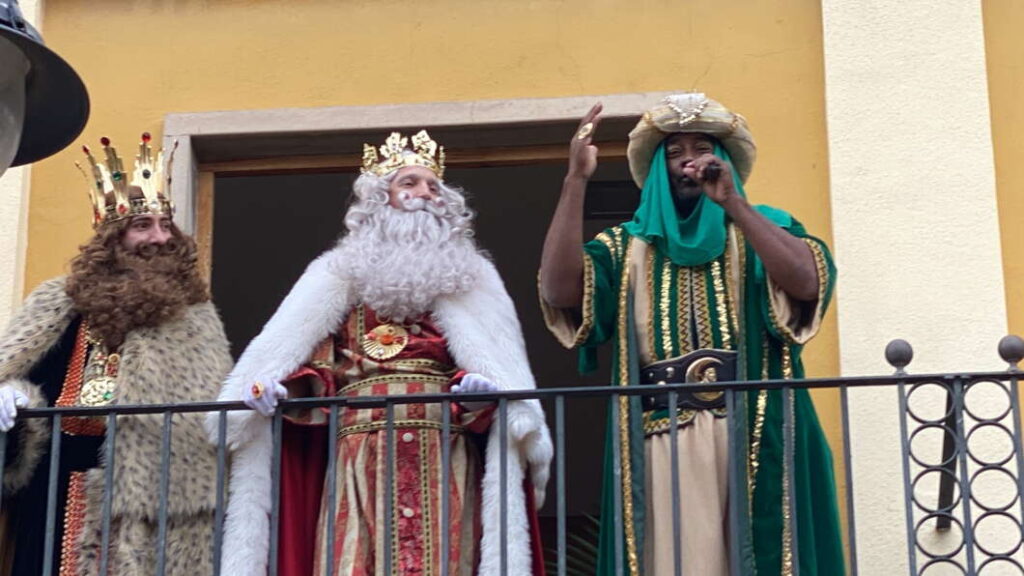 Posteriormente, los Reyes Magos han subido al Ayuntamiento y accedido al balcón, desde donde han dirigido unas palabras a todos los niños que se encontraban con sus familias en la Plaza Mayor.