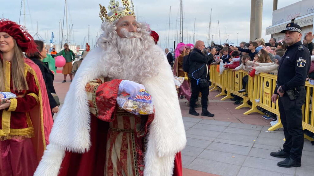 El recorrido entre la Plaza del Mar, por el paseo del muelle de Costa, ha sido complicado y difícil, imposible contener a los niños que se tiraban por debajo de las vallas de seguridad para recoger todos los caramelos que arrojaban sus majestades.