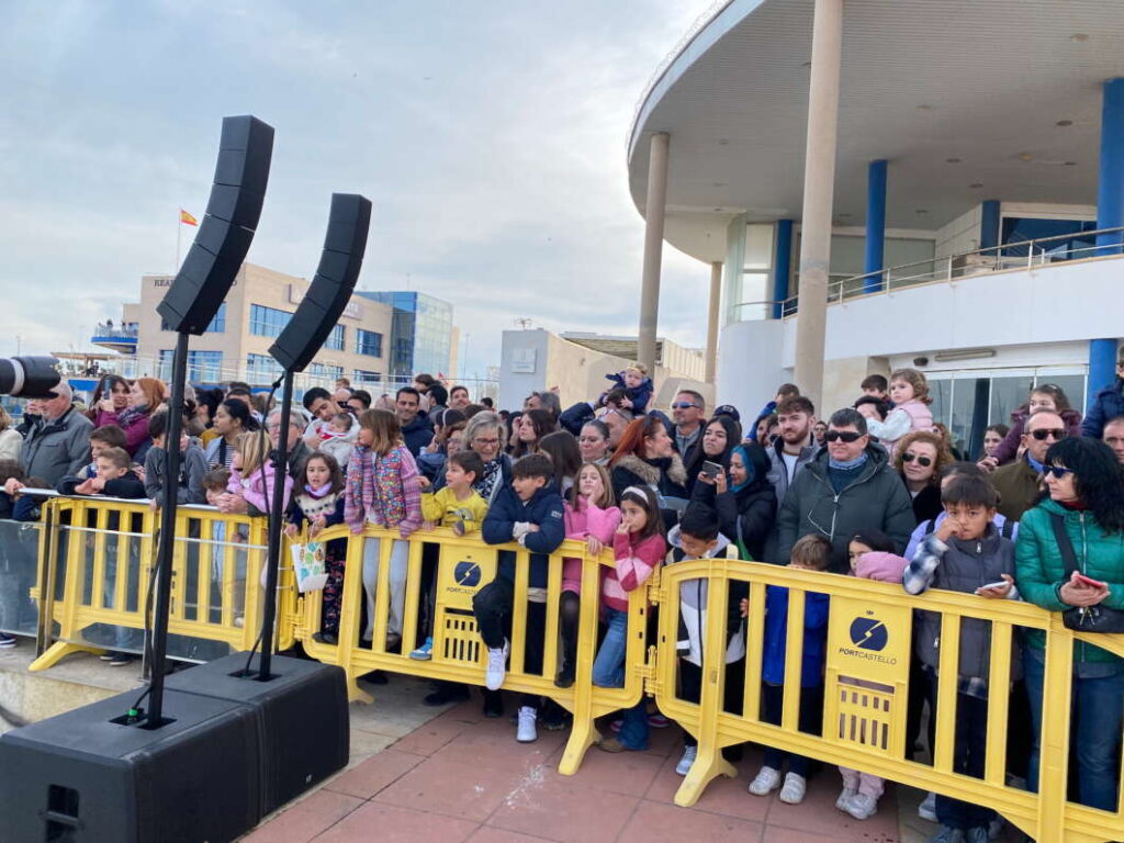 Tras atracar sus naves en la Dársena sur, los magos han embarcado en el Catamarán del Puerto con el que han recorrido el interior de PortCastelló acompañados de un montón de barcos del Real Club Náutico de Castellón, pero también de Salvamento, de Bomberos y de Seguridad.