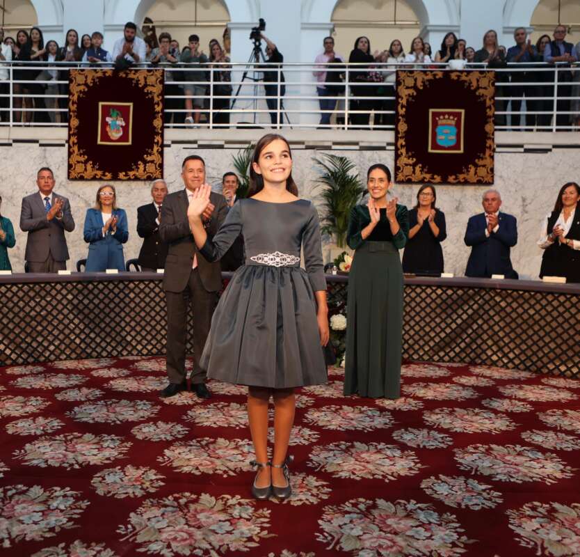 En quant a la Reina Fallera infantil de Burriana, Anna Solà, lluirà com a primera indumentària un vestit de fallera, model clàssic amb mànegues de fanal en color Acqua confeccionat amb la seda estreta Tres Corones. La reina lluirà un vestit tradicional del S.XVIII confeccionat en brocatell de seda estreta Alos i metall d'or voltejat en color Raïm. Sabates abotinades.