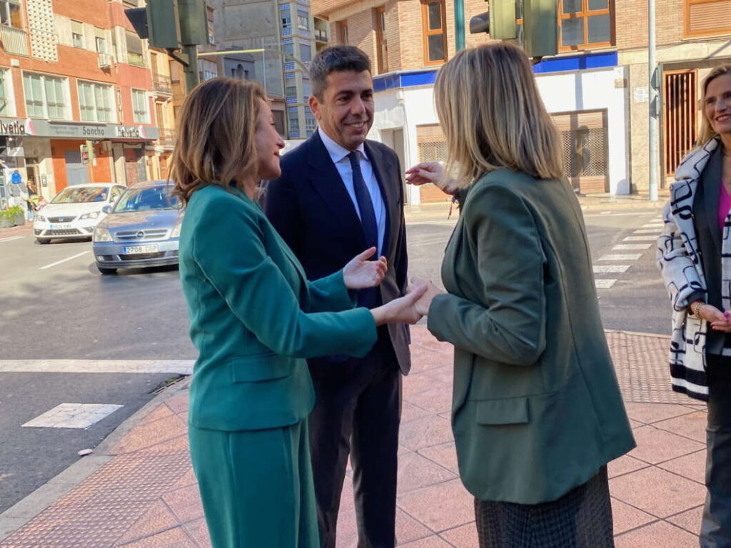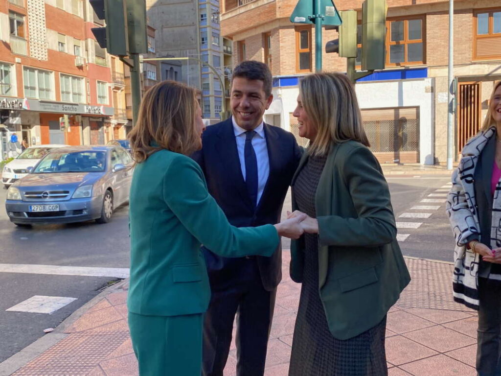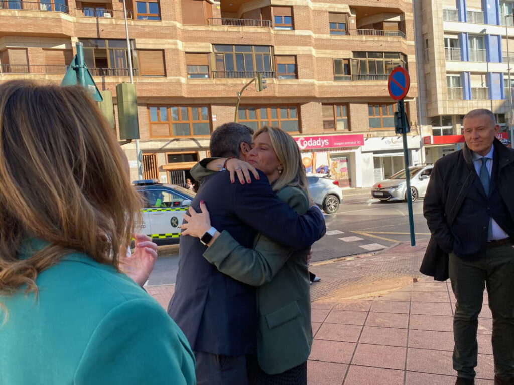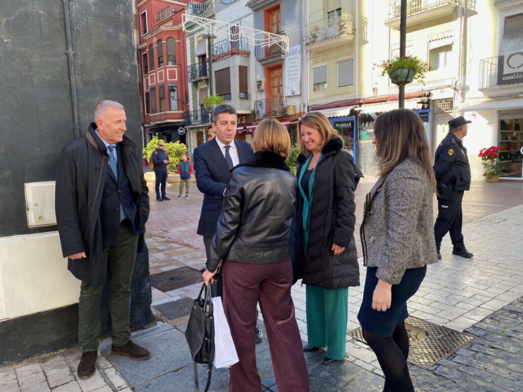 A su llegada a la plaza Juez Borrull, donde lo esperaban para visitar el resultado de la restauración de los antiguos juzgados, lo más sonado fue el abrazo a la presidenta de la Diputación, Marta Barrachina, y el saludo entre la alcaldesa y su presidenta provincial.