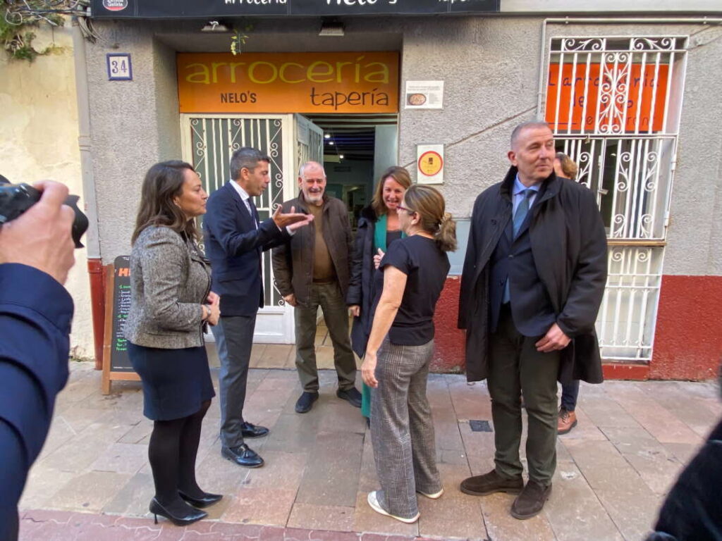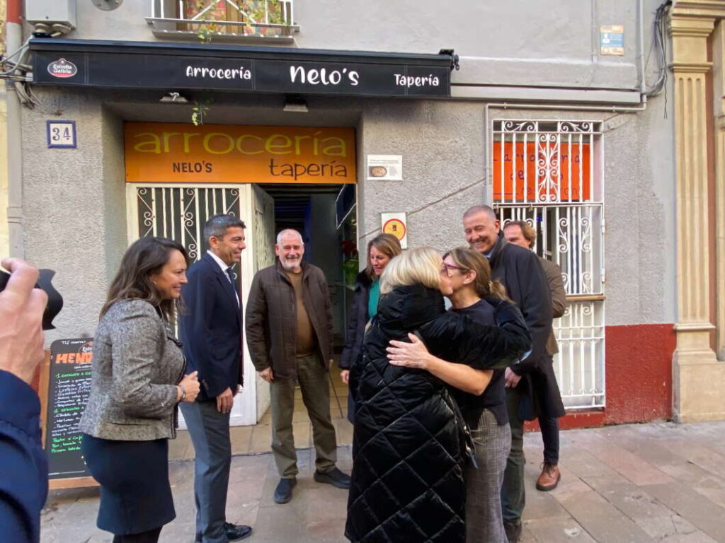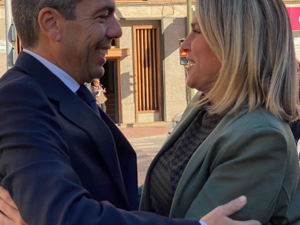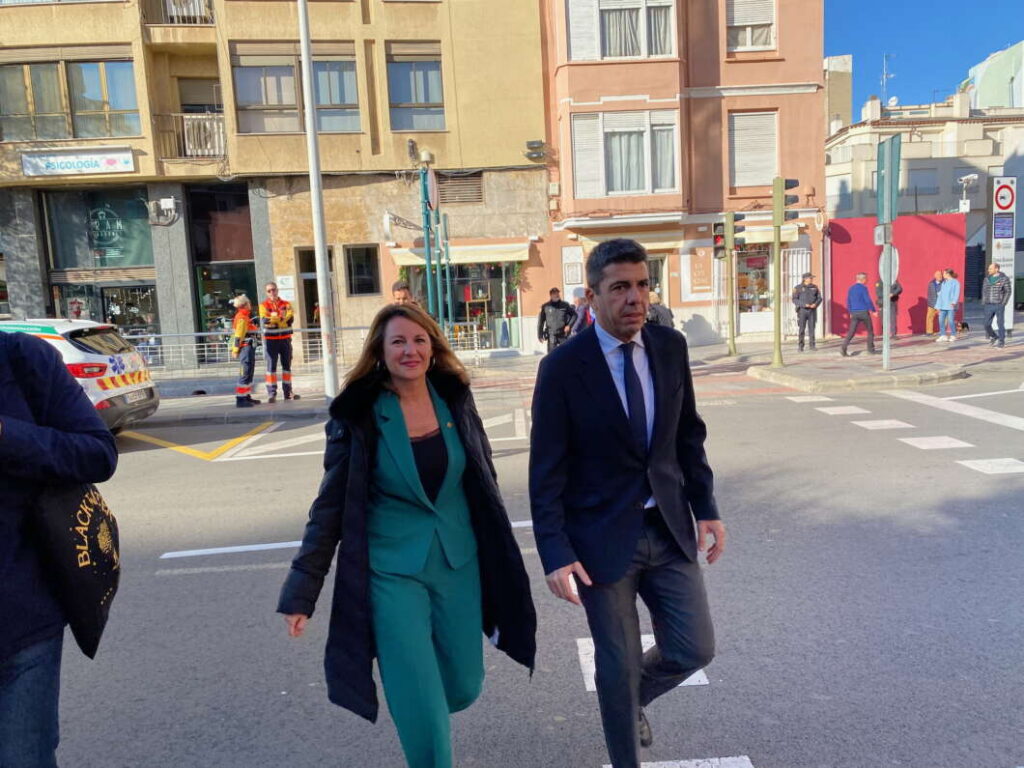 A su llegada a la plaza Juez Borrull, donde lo esperaban para visitar el resultado de la restauración de los antiguos juzgados, lo más sonado fue el abrazo a la presidenta de la Diputación, Marta Barrachina, y el saludo entre la alcaldesa y su presidenta provincial.