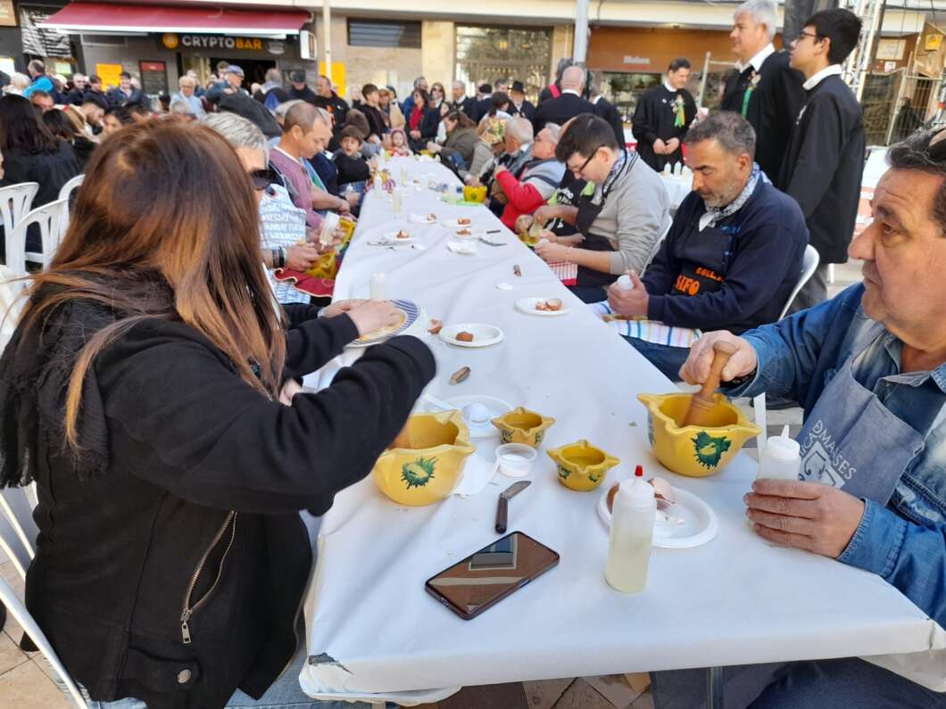 Participantes de la provincia y de otros puntos de España han competido durante media hora por elaborar la mejor salsa con los ingredientes (huevos, ajos, aceite y sal) facilitados por la colla y el uso de sus propios utensilios de cocina. En esta ocasión, José Luis Peris y Lucía Miralles han quedado segundo y tercera, respectivamente.