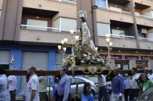 Hui, Dia de la Mare de Déu del Carme, s’ha celebrat la processó i missa amb eixida des del pati del convent i carrers adjacents. Posteriorment s'ha celebrat la santa missa, a la qual ha assistit part de la corporació municipal, encapçalada per l'alcalde, José Benlloch, al patí dels Carmelites.