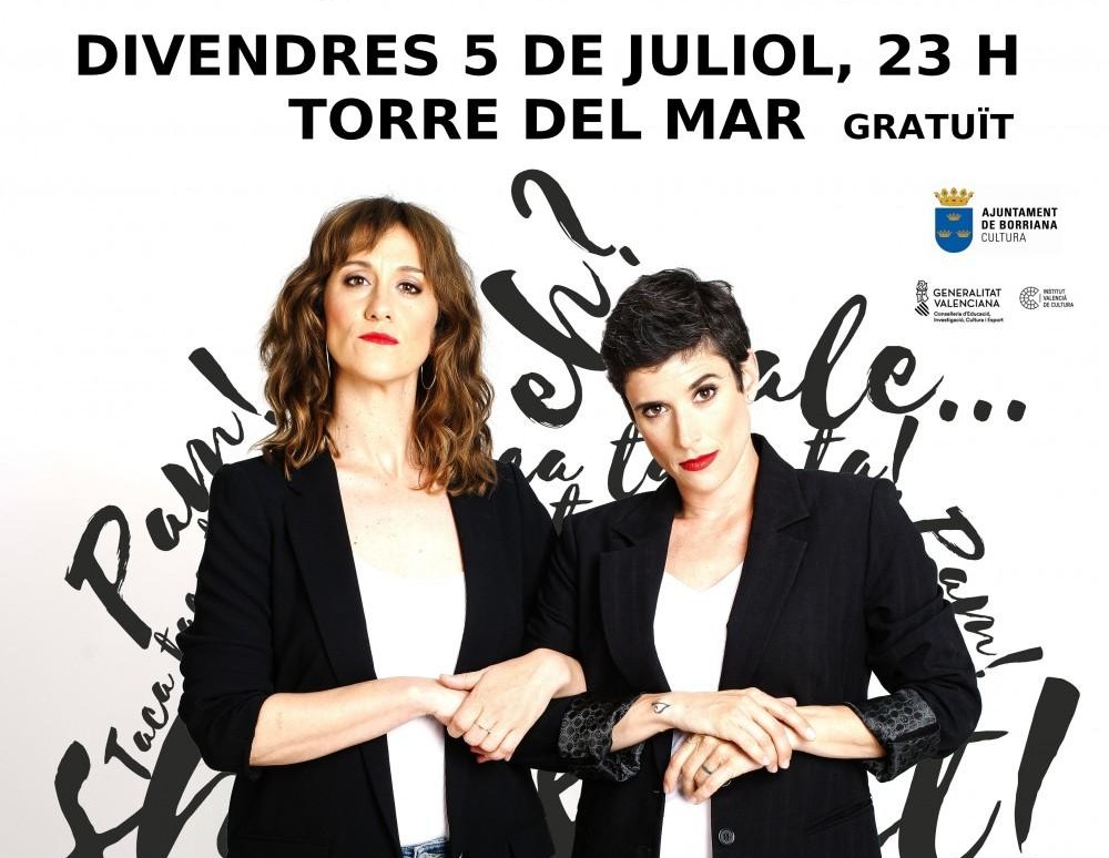 Aquest pròxim divendres, dia 5 de juliol, el cicle s'encetarà amb l'espectacle conjunt de dues còmiques mediàtiques i televisives: Maria Juan i Pepa Cases. En Pepitaimariua ens trobarem un espectacle d'humor, de monòlegs, d'improvisació i de moltes sorpreses perquè amb estes dues còmiques valencianes mai se sap el que pot passar.