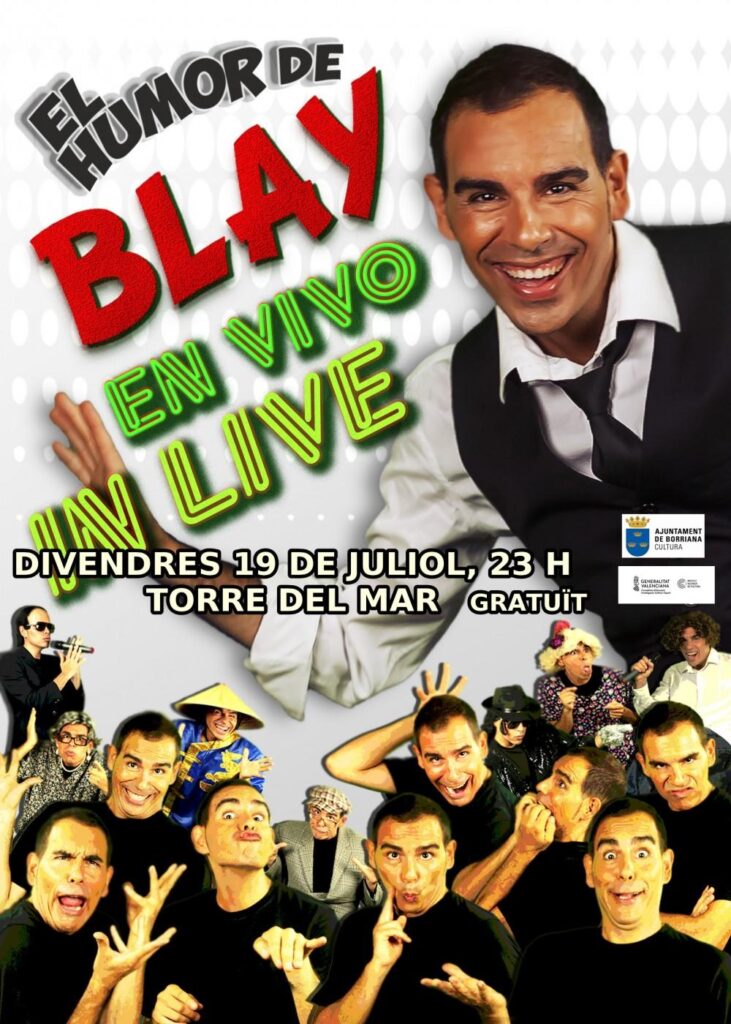 El dia 19 de juliol l'humorista Blay ens presentarà L'humor de Blay en viu. Serà un espectacle d'humor, al més pur estil one man show, on aquest gran còmic posa tot el seu talent humorístic al servei de l'espectador. Un xou dinàmic, diferent i divertit, ple d'imitacions, monòlegs, paròdies, acudits, interacció amb el públic, música, cançons i riures, molts riures.