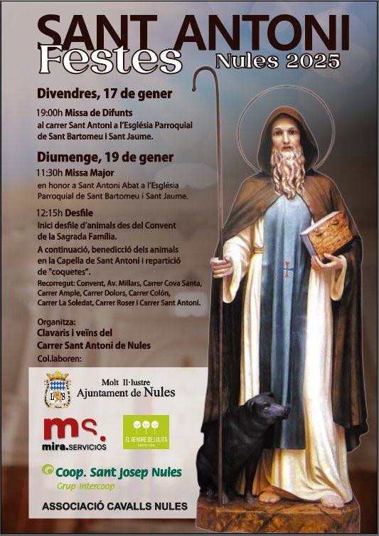 En concret, diumenge, 19 de gener, el veïnat de Nules podrà gaudir dels diferents actes que organitza l’Associació de Veïns i Devots de Sant Antoni Abad amb la celebració de la missa major i posterior desfilada d’animals, amb la tradicional benedicció i repartiment de “coquetes” a la Capella de Sant Antoni.