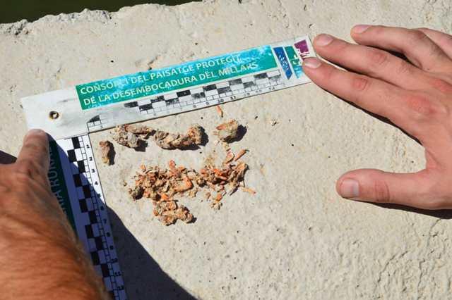 El guarda del Consorcio, David López, explica el hallazgo: "Hemos determinado que se trata de nutria por los excrementos. Suelen tener suficientes restos de cangrejo rojo americano, alguna espina de pescado y a veces pequeños huesos de micro mamíferos. Las nutrias suelen utilizar los mismos puntos para defecar. Hacen algo que se llama letrinas, es decir, suelen marcar y defecar en el mismo punto de manera repetida. También dejan rastros de huellas y rasguños". Sobre todo hay dos características que han determinado que se trata de cacas de nutria y no de visones americanos. En primer lugar el tamaño, ya que las defecaciones de nutria son mayores que las de los visones. Después se define por el olor. Según explica David López, los excrementos de nutria huelen a pescado mientras que las de los visones hacen un olor muy fuerte a deposición.