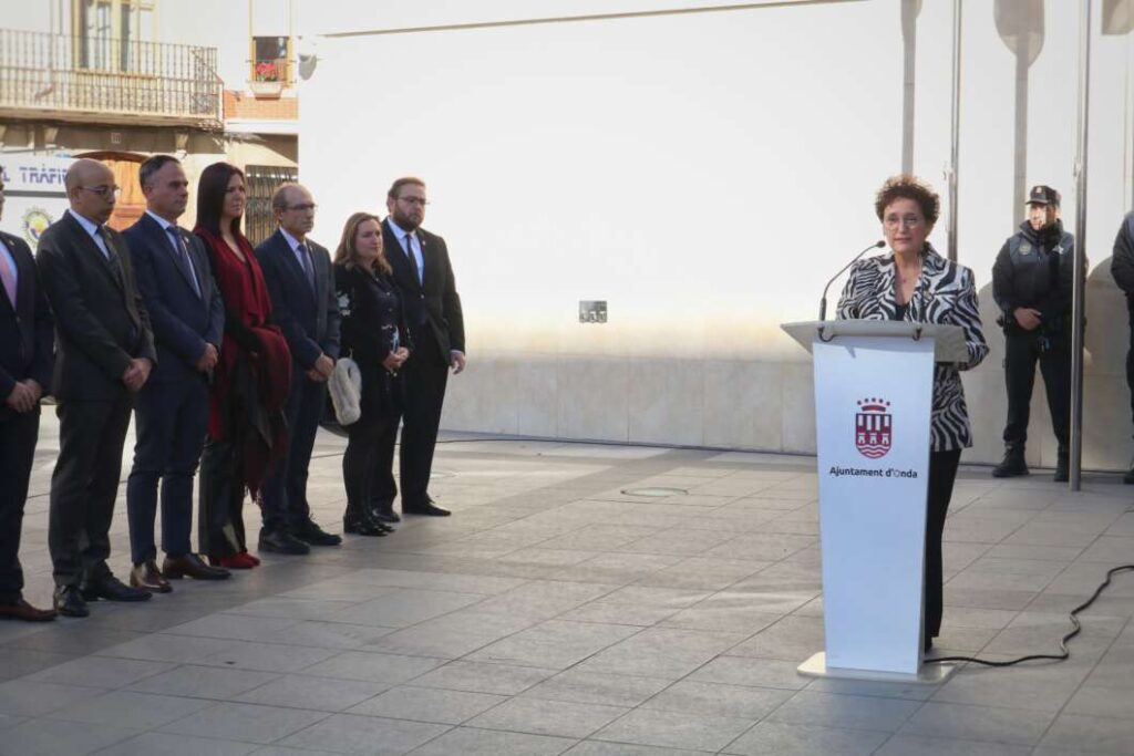 Durante el acto, la Unión Musical Santa Cecilia de Onda ha sido la encargada de interpretar el himno nacional a las puertas del Consistorio y se ha realizado una izada de banderas en la que han participado Policía Local y Guardia Civil.