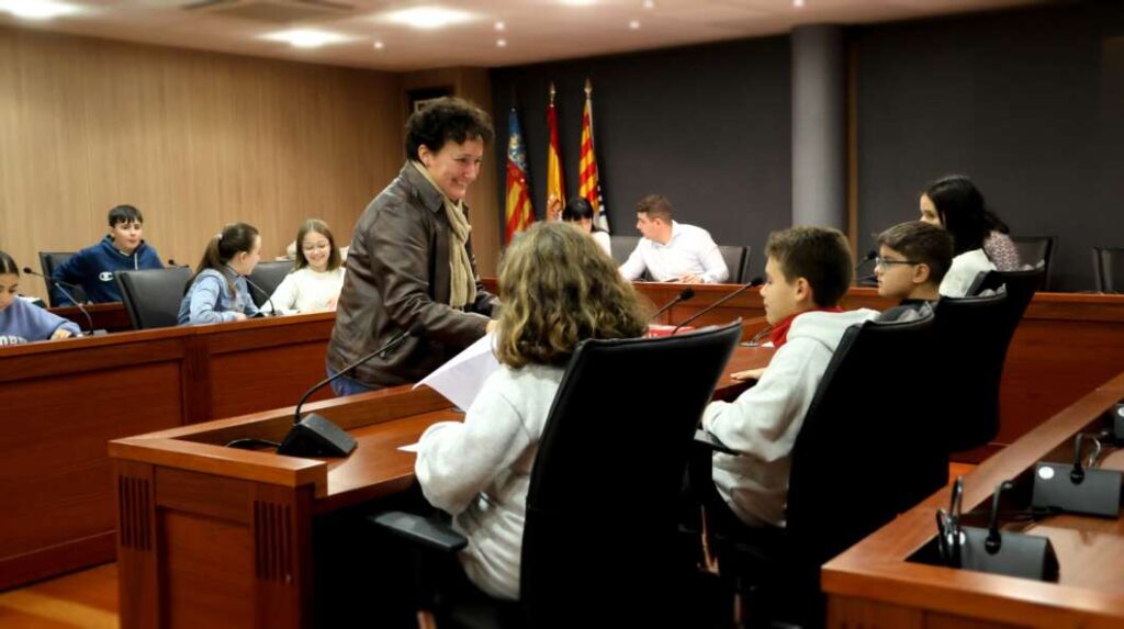 Durante el acto, 18 niños y adolescentes representantes de todos los centros educativos de la localidad y de distintas edades tomaron asiento en la bancada de los concejales y expusieron sus propuestas en temas clave como accesibilidad, sostenibilidad y uso responsable de la tecnología.