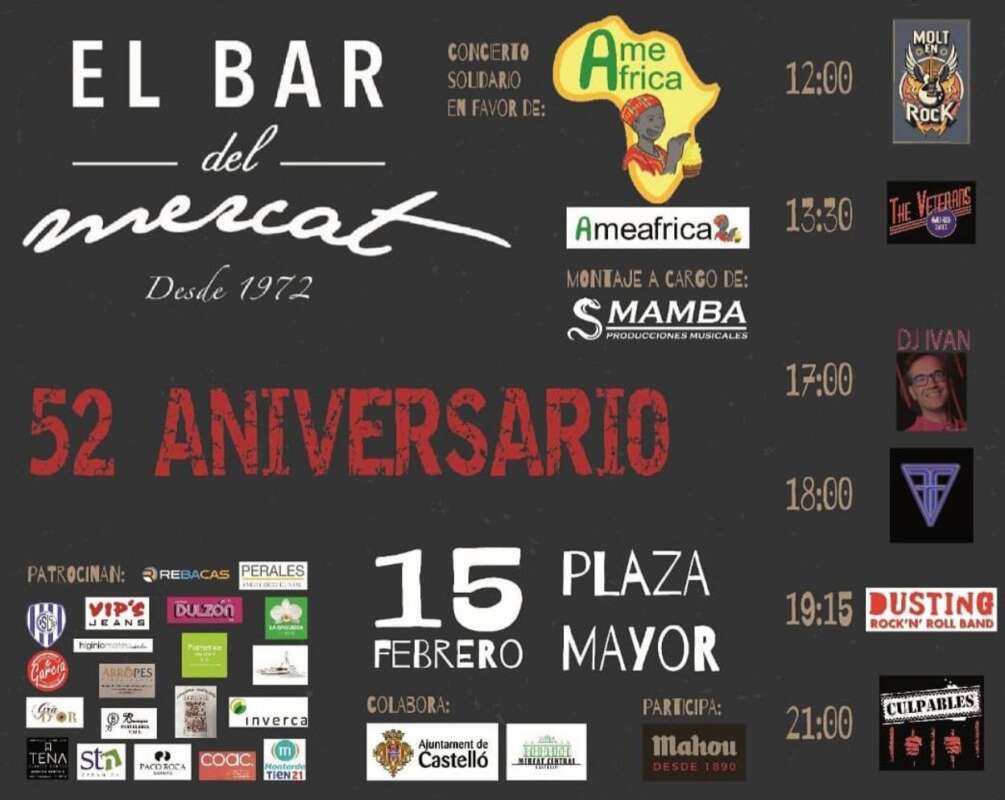 El Bar del Mercat celebra su 52º aniversario con una gran fiesta el próximo 15 de febrero que contará con la actuación de seis grupos locales