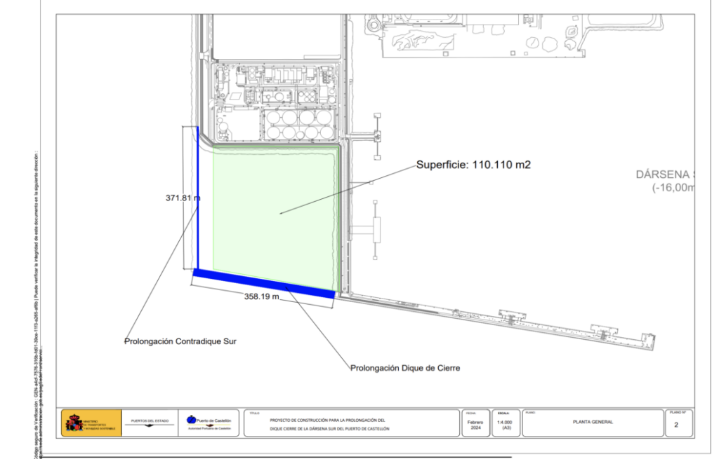 El objetivo es ampliar superficie para ponerla a disposición de nuevas empresas y facilitar el incremento del tráfico de graneles líquidos en el puerto de Castellón. En concreto, se ganará un espacio de 110.110 metros cuadrados.