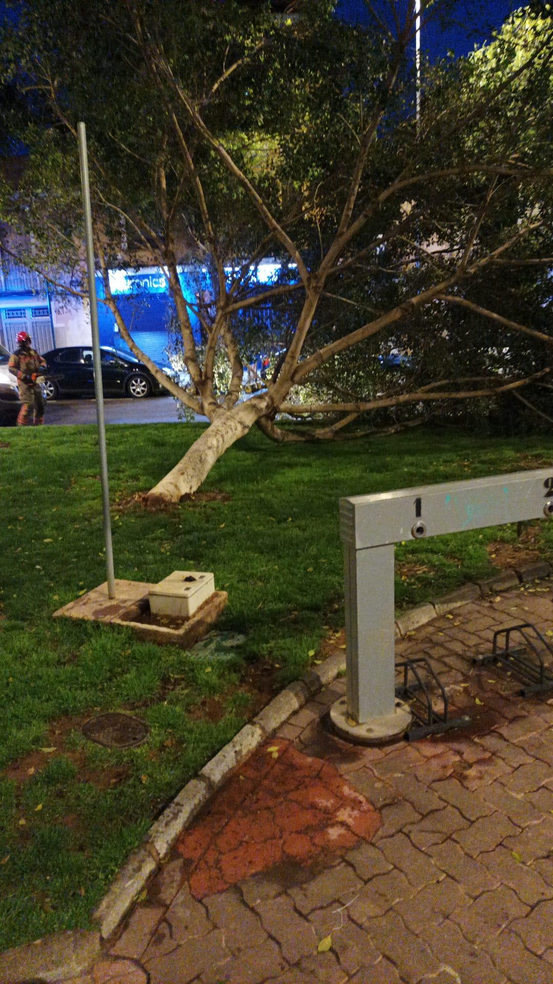 En la capital de la Plana, las fuertes ráfagas de viento después de la lluvia arrancaban y tumbaban uno de los árboles situados en la plaza de Sant Roc, en pleno centro de la ciudad. Hasta el lugar se trasladaban los Bomberos y la Policía local para poder cortar las ramas e impedir que se pudieran producir daños.