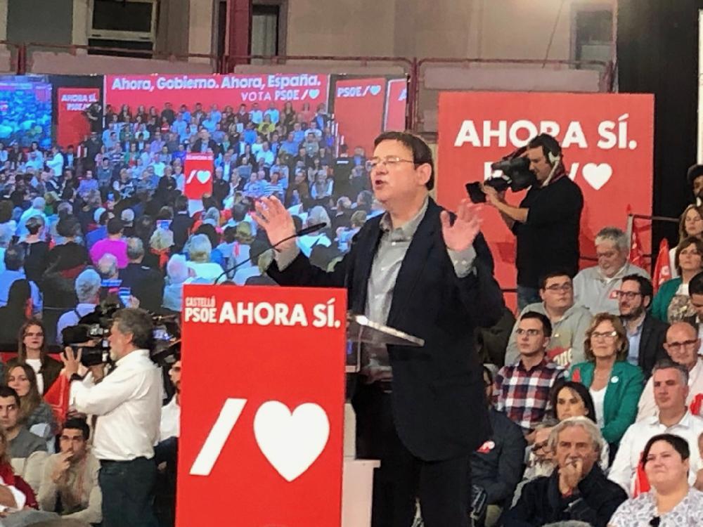 Pidió el voto para Pedro Sánchez, pero, sobre todo, enfatizó la necesidad de votar el próximo 10N. Y es que tanto Puig como sus compañeros del PSOE centraron gran parte del mitin en la necesidad de romper los augurios del incremento de la abstención.