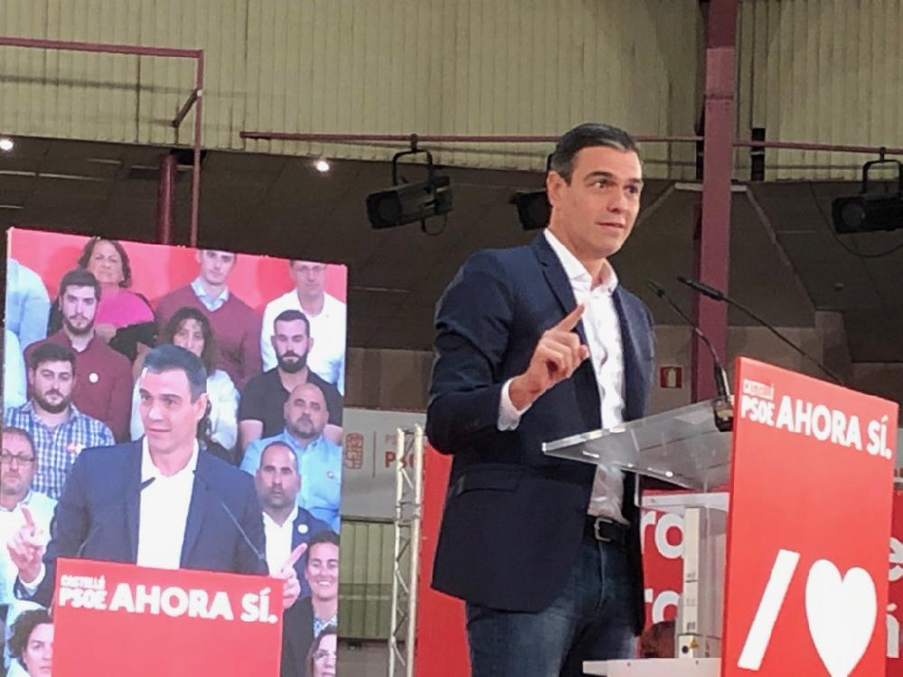 El mitin de Pedro Sánchez en Castellón, para pedir el voto para el PSOE el próximo domingo, no consiguió la asistencia de público que tuvo hace unos meses en el Palau de la Festa.