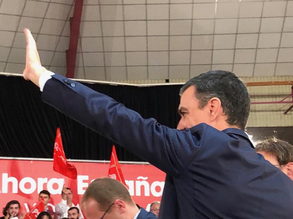 Y finalmente, dio la palabra a Pedro Sánchez, que fue recibido con entusiasmo, con el ondeo de banderas del PSOE, y con la algarabía de su público.