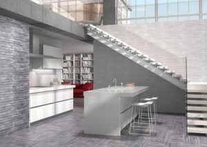 Pero no solo el mobiliario y los electrodomésticos cambian, puesto que el suelo y las encimeras deben seguir con la línea general de la decoración. En cuanto a las encimeras, los tradicionales granitos y mármoles comparten espacio con materiales sintéticos e incluso la madera. Los suelos, por su parte, se funden en armonía con el minimalismo y las líneas puras siendo la tendencia predominante la temática vintage o los diseños geométricos.