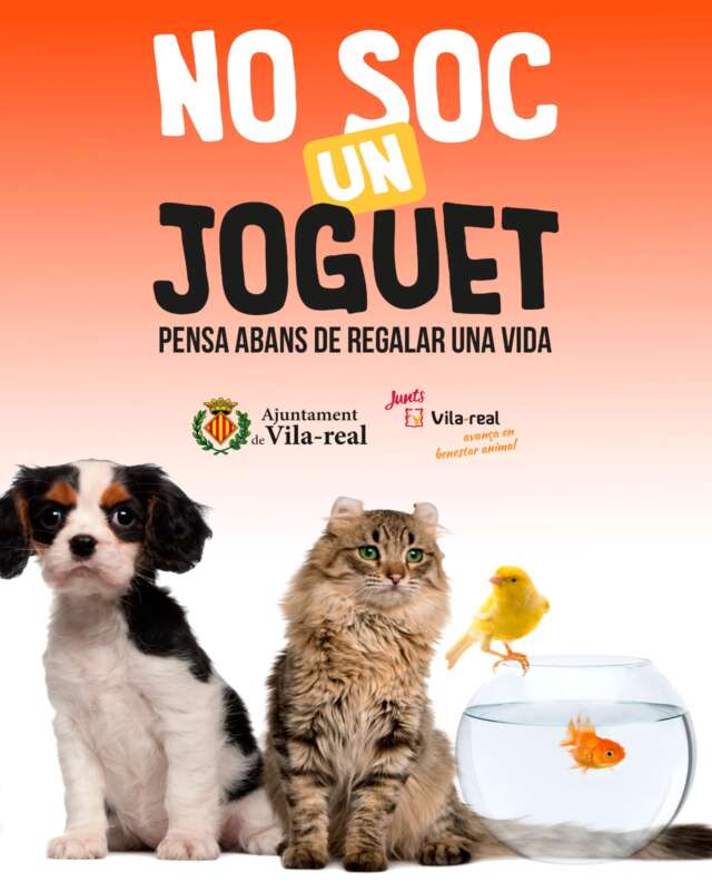 La Regidoria de Benestar Animal de Vila-real ha llançat una campanya de conscienciació per a demanar a la ciutadania responsabilitat a l'hora de regalar mascotes durant aquestes festes nadalenques. La campanya porta per lema ‘No soc un joguet. Pensa abans de regalar una vida’ i pretén “evitar que els animals que es regalen durant el Nadal puguen acabar després abandonats”. Així ho ha explicat la regidora responsable de l'àrea, Miriam Caravaca, qui ha subratllat que “una mascota no és una diversió, ni un joguet, és un ésser viu que requereix de cures per a garantir el seu benestar i és necessari un compromís per a assegurar la protecció de l'animal”.