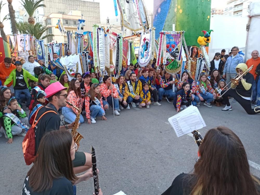 Pasadas las ocho de la tarde se ha iniciado una rúa desde la plaza San Agustín encabezada por Carnestoltes, las reinas y reyes de las comparsas, con sus estandartes, a la que se han unido los comparseros para dirigirse hasta el recinto de carnaval para proceder a su inauguración oficial. Una rúa que ha contado con la animación musical de la charanga La Marxa.