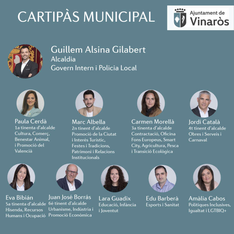 - Marc Albella. 2.º teniente de alcalde y concejal de Promoción de la Ciudad e Interés Turístico, Fiestas y Tradiciones, Patrimonio y Relaciones Institucionales.