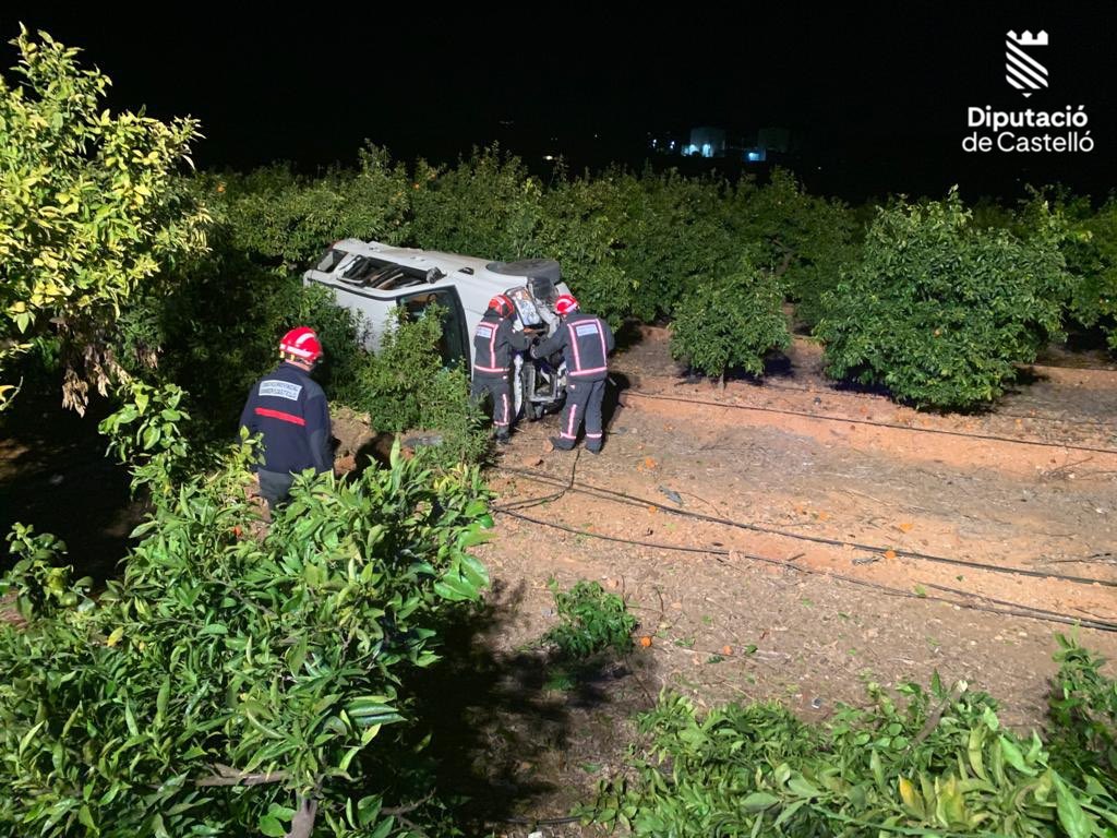 El segundo incidente ocurría horas más tarde, ya entrada la noche, también en el término municipal de Onda. En este caso, la alerta recibida notificaba que un vehículo se había salido de la vía y había volcado. De nuevo se temió que el conductor pudiera haber quedado atrapado dentro del vehículo, aunque por suerte, no fue así.