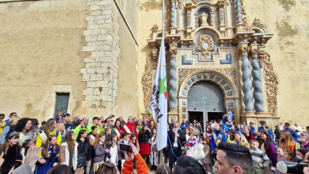 La bandera del Carnaval de Vinaròs ya ondea en el centro de la ciudad. Esta mañana se ha realizado la izada de la bandera en la plaza Parroquial, frente la Casa Consistorial, con la presencia de las reinas y reyes de las comparsas, así como autoridades municipales, representantes de la COC y Carnesltes.